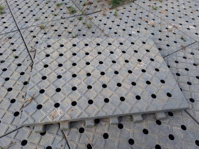 Caillebotis universels achetés chez Rovagro et destinés à des bovins ou des équidés. Ils ont servi à daller l'abri de deux ânes quelques mois et sont donc en excellent état avec quelques tâches (je les passerai au jet avant la vente).